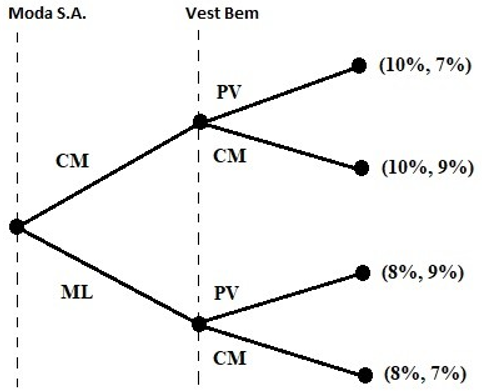 Nesse contexto, considere a seguinte representação das estratégias de tomada de decisão das empresas Moda S.A. e Vest Bem no varejo de moda no Brasil: